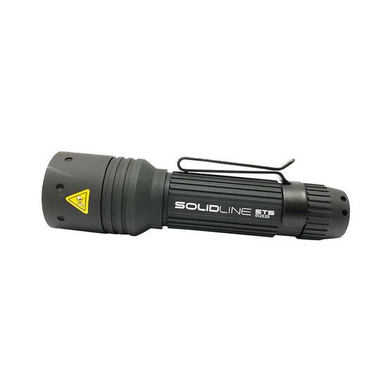 With strong aluminium housing and porous surface for grip, the compact, reliable Solidline ST5 Torch is ideal for day to day use. The design of this flashlight includes a Focus Control System, allowing the user to focus the light beam. The torch also features an additional clip, handy for attaching the torch to a belt or pocket.